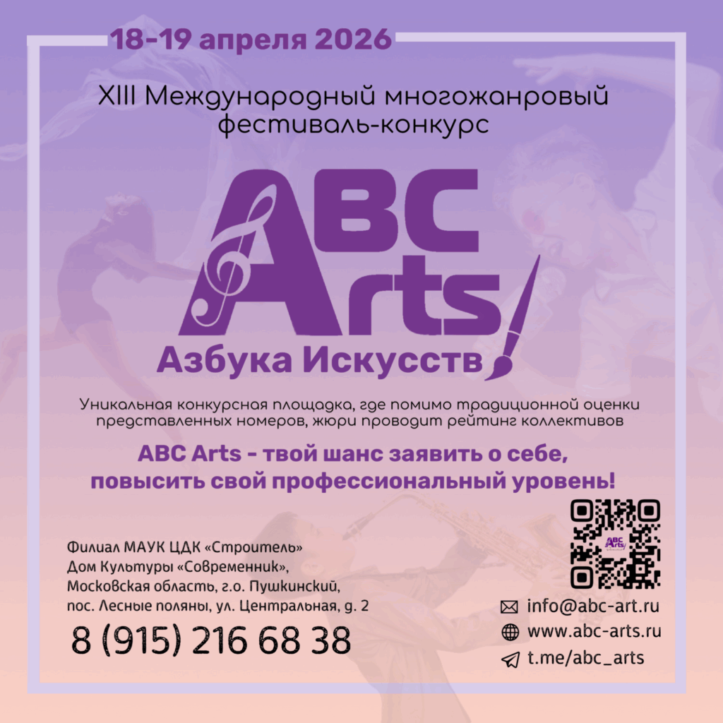 📌 6-7 декабря 2025 и 18-19 апреля 2026 — Международный многожанровый фестиваль-конкурс «ABC Arts — Азбука искусств».