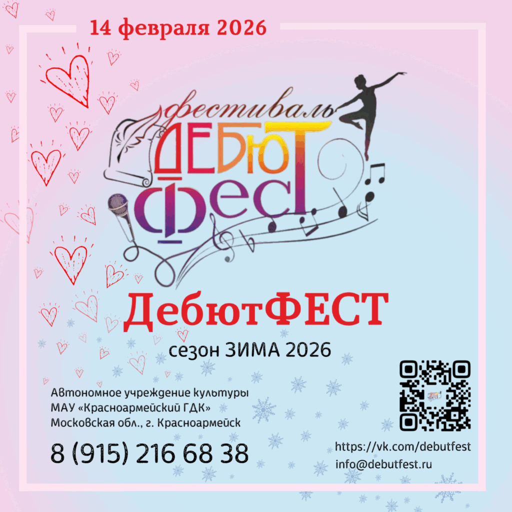 📌 18 октября 2025 и 14 февраля 2026 — Российский открытый фестиваль-конкурс «ДебютФест»;